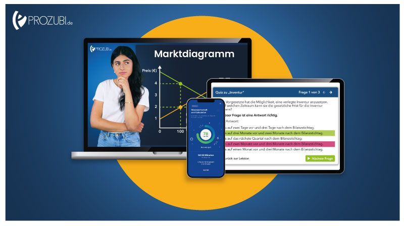 … und dann hast du es endlich geschafft! Um dich auf deine IHK-Abschlussprüfung erfolgreich und einfach vorzubereiten, lerne mit Prozubi! Bereite dich einfach mit unseren Lernvideos, Quizfragen und weiteren Aufgaben auf deine Abschlussprüfung vor. Na, neugierig geworden? Schau einfach doch einfach mal auf www.prozubi.de vorbei!