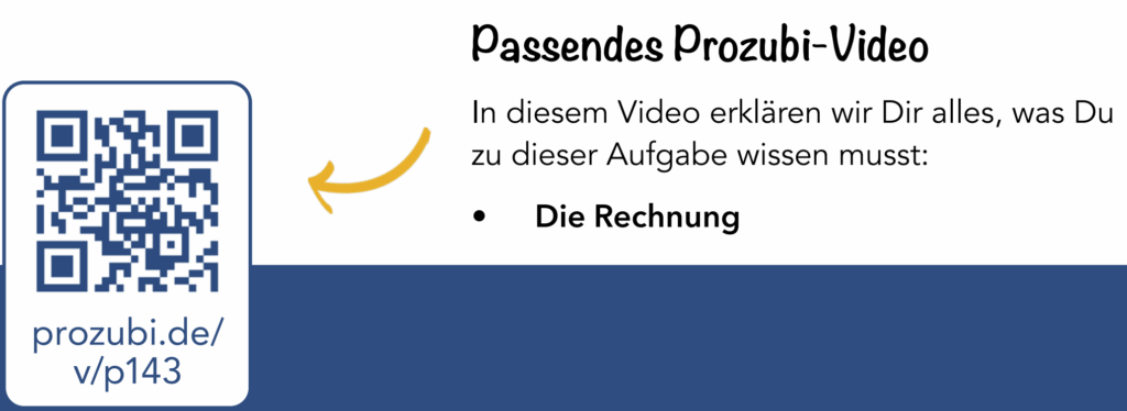 Dazu gibt's wie immer eine vollständige Musterlösung, mit der Du Deine Eintragungen Schritt für Schritt kontrollieren kannst. Ergänzend dazu findest Du im Aufgabenblatt einen QR-Code, der Dich direkt zum passenden Lernvideo zur Rechnungserstellung führt. Dort erklären wir Dir genau, welche Pflichtangaben eine Rechnung enthalten muss, wie Du die Beträge berechnest und worauf in der Prüfung besonders zu achten ist.